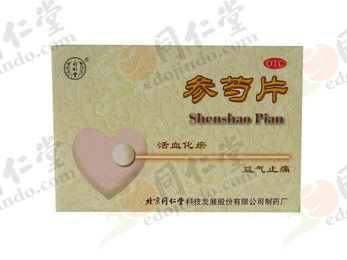 参芍片の効能 活血化於、益気止痛。 適應症: 気虚血於による胸苦しさ、胸痛、心悸、呼吸困難等の症状に適応。 |